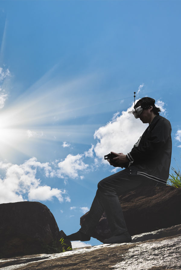 撮影機体の視点で操縦することができる小型ドローンで、一般的なTPV(Third Person View)ドローンとは異なった、ダイナミックでインパクトのある映像表現が可能です。